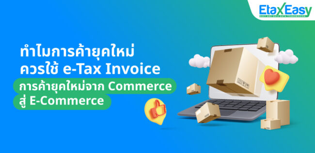 ทำไมการค้ายุคใหม่ควรใช้ e-Tax Invoice: การค้ายุคใหม่จาก Commerce สู่ E-Commerce ในอดีต “การค้า” คือการแลกเปลี่ยนสินค้าและบริการระหว่างผู้ซื้อกับผู้ขายในสถานที่จริง เช่น ตลาด ร้านค้า หรือศูนย์การค้า แต่ปัจจุบันด้วยการพัฒนาเทคโนโลยีและอินเทอร์เน็ต การค้ายุคใหม่ได้เปลี่ยนผ่านจาก Commerce สู่ E-Commerce หรือการค้าแบบออนไลน์อย่างเต็มรูปแบบ ซึ่งไม่เพียงแค่เปลี่ยนวิธีการขาย แต่ยังเปลี่ยนพฤติกรรมของผู้บริโภคทั้งระบบ เช่นเดียวกันกับเอกสารสำคัญทางธุรกิจที่ได้เปลี่ยนจากรูปแบบ “กระดาษ” มาเป็นแบบ “อิเล็กทรอนิกส์” โดยไม่จำเป็นต้องใช้กระดาษเลยด้วยซ้ำ หรือที่เรียกว่า e-Tax Invoice & e-Receipt คอมเมิร์ซ (Commerce) คือ การซื้อขายสินค้าและบริการในรูปแบบดั้งเดิม มีช่องทางการขาย ผ่านหน้าร้าน ตลาด ห้างสรรพสินค้า เป็นต้น ซึ่งมีความแตกต่างจาก อีคอมเมิร์ซ์ (E-Commerce) อีคอมเมิร์ซ (E-Commerce) คือ การพาณิชย์อิเล็กทรอนิกส์ คือการทำธุรกรรมซื้อขาย การให้บริการ หรือแลกเปลี่ยนสินค้าและบริการบนอินเทอร์เน็ต โดยใช้เว็บไซต์หรือแอปพลิเคชั่นเป็นสื่อกลางในการซื้อ-ขายออนไลน์ผ่านหน้าเว็บไซต์ หรือในการนำเสนอสินค้าและบริการต่างๆ รวมถึงการติดต่อกันระหว่างผู้ซื้อและผู้ขาย ตารางเปรียบเทียบความแตกต่างระหว่าง Commerce…